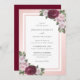 Elegante y florida invitación a bodas borgoñas y ruidosas con rosas rojas y rosa rubor. Elementos coincidentes disponibles.