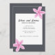 Invitación a la boda gris con flores rosas. Invitación nupcial moderna y minimalista.