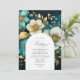 personalizable de invitación de boda floral verde azulada y dorada a los detalles de su evento.