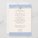 Invitación nupcial estándar 5 x 7 en un sencillo y elegante patrón florentino giratorio en azul celeste. El patrón impreso tiene acentos gráficos de cinta que no son válidos en un fondo blanquecino, todos formateados y listos para su edición con sus propios detalles de evento en el sencillo editor de texto Zazzle. Disponible en 6 colores. Coincidiendo con las tarjetas RSVP, guarde las tarjetas de fecha, las tarjetas de tienda de mesa y los sobres con patrones de impresión internos que coincidan también disponibles por separado en esta colección. *Permitir semanas adicionales para sobres de personalizado coincidentes.