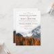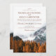 Esta invitación es perfecta para el boda de montaña con temática de otoño. El diseño presenta árboles rústicos del bosque de terracota y montañas nevadas en la parte trasera. La parte trasera de la tarjeta tiene los monogramas de la novia y el novio.