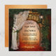 Una magnífica invitación a la boda con un tema de bosque encantado. La invitación muestra una escena boscosa con una puerta y un velo romántico con rosas y linternas que conducen a una luz mágica. Perfecto para la celebración de un boda en un jardín, un campo o un parque. Esta invitación tiene una tarjeta RSVP correspondiente.