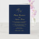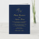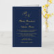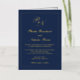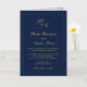 Invitación tradicional de bodas plegadas de color azul marino con un diseño sencillo y clásico con su primer monograma y sus nombres en una elegante caligrafía dentro de un delgado borde. Todos los elementos de diseño del frente están en Relieve metalizado oro real. Estas elegantes invitaciones nupciales son perfectas para un boda formal.