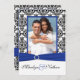 Esta invitación a la boda con fotos de damasco en blanco y negro con cinta y joyas azul real IMPRESAS EN azul sería perfecta para un tema de boda azul y negro real. El texto y el papel son todos personalizables. Si necesita cualquier otro elemento coincidente, envíe su solicitud a niteowlstudio@gmail.com.