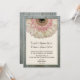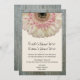 Invitación a una boda con la imagen de una margarita gerbera rosa y blanquecina en la parte superior. La frontera en todos lados es de madera de pino. La espalda es madera de pajarera. Personalice el texto con detalles de su ocasión.