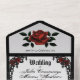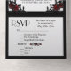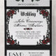 Elegante aspecto de marcos de vallas de hierro y rosas rojas oscuras en una invitación plateada con un guión único. El retorno de RSVP tiene dos candelabros y el personalizado entrega al texto. Cambie el texto para lo que necesite. Si necesitas ayuda, simplemente envíame un mensaje. Por favor, compruebe tres veces su texto antes de la compra final