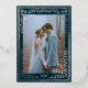 Invitación a la boda gótica con Relieve metalizado plateado celeste con foto Los detalles de este modelo son sellados con Relieve metalizado.