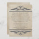 Elegante y moda Elegante Invitación a la Boda Deco con un remolino de estilo Art Déco con bordes de gris y un fondo texturado vintage en un beige suave. Esta invitación tiene un encanto rústico y mantiene un agradable estilo sofisticado. Ideal para un boda con temática vintage de los años 20. Fácil de personalizar, simplemente agregue los detalles de su boda en los campos de texto proporcionados. Haga clic en "Personalizar" para buscar más opciones de personalización, como cambiar fuentes o colores de texto.