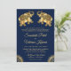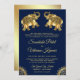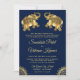 Sorprenda a sus invitados con esta elegante invitación a una boda india con elefantes hermosamente decorados con un fondo azul oscuro. Simplemente agregue los detalles de su evento en esta plantilla fácil de usar para convertirla en una invitación única. Esta carta es totalmente personalizable. Todos los textos son editables y el color de fondo puede cambiarse fácilmente a lo que más le convenga. Girar la carta para revelar una textura falsa de Relieve metalizado dorado en la parte posterior de la tarjeta.