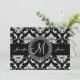 Invitación a la boda del patrón floral de Damasco blanco negro Puede Personalizarse con los nombres iniciales de su monograma y los nombres de novias y novios en la parte delantera. Agrega tu texto de invitación de boda en la parte posterior de la tarjeta. Diseño horizontal de 5 x 7 pulgadas por Elke Clarke ©2010. Gráficos con licencia. Personalizar con los datos de su boda e información personal. Para obtener ayuda u otros colores y diseños, póngase en contacto con luxuryweddinginvitations@gmail.com
