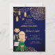 Invitación a una boda islámica Mehndi Henna con una novia y un novio rubios, linternas marroquíes, azul marino y oro