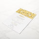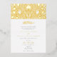 Esta exquisita invitación a la boda combina la intrincada belleza del diseño victoriano con el elegante guion del arte islámico. En la portada se ve un patrón simétrico de flores victorianas en oro, acentuado por un par de aves amorosas, cada una con una inicial de los nombres de la pareja. El interior de la invitación revela una armoniosa mezcla de caligrafía tradicional inglesa y árabe, invitando a los huéspedes a celebrar la unión. Los detalles de la invitación se establecen en un fondo blanco texturado que mejora la legibilidad del texto, mientras que los elementos de diseño dorado resuenan con la riqueza de ambas culturas. Esta invitación es un hermoso testimonio de un boda que abraza la fusión cultural con gracia y estilo.