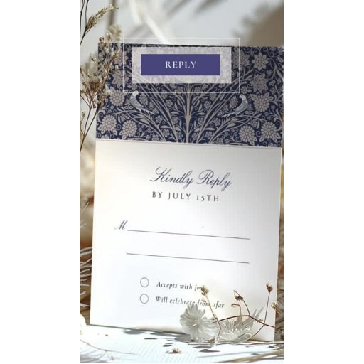 Esta exquisita invitación a la boda es una hermosa representación de la armonía cultural, mezclando los intrincados diseños del arte victoriano con la elegante caligrafía de la tradición islámica. El azul profundo de la marina aporta un rico lienzo para los elaborados motivos y motivos blancos y dorados que adornan la carta, incluidos los elegantes pájaros amorosos que simbolizan la unidad de la pareja. El frente de la invitación muestra los nombres de la pareja en una fusión de textos en inglés y árabe, que transmiten respeto e inclusión. Esta invitación no es meramente una invitación sino una celebración de dos familias que se unen, honrando sus patrimonios distintos y compartidos.