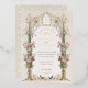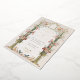 Esta invitación a la boda es un lienzo romántico pintado con los suaves tonos de un jardín inglés. Las flores de color rosa, coral y marfil de claveles caen en cascada por las urnas doradas ornamentales, simbolizando el crecimiento y florecimiento del amor. La arcada florida, adornada con una delicada vegetación, enmarca las iniciales de la pareja en un estilo victoriano tradicional, creando una atractiva entrada para la celebración de la unidad. Debajo, se despliega una pintoresca escena con una familia de pájaros, haciendo eco del tema de la unión. Este diseño refleja la esencia de la elegancia atemporal, perfecta para la pareja que desea combinar el encanto clásico de una época pasada con la alegre promesa de su futuro juntos.