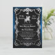 Caballeros medievales Jousting Wedding Invitación Relieve metalizado plateado Purpurina Gótico negro y azul