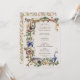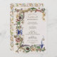 Celebra tu día especial con esta invitación de boda única de inspiración medieval, con fronteras florales ilustradas a mano en vivos tonos de verde, oro, rojo y azul. Los detalles botánicos son muy complejos y evocan un encanto de antaño, que se complementa con una elegante tipografía serif y un refinado paisaje de parqué. La parte posterior de la invitación muestra un patrón de entrelazado de flores, creando un diseño cohesivo y artístico. Perfecto para los bodas vintage, medieval o con temática de cuento de hadas, esta invitación marca el tono para una celebración mágica e inolvidable.