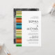 Un conjunto de bodas de color de verano serape invita a un estilo abierto y mínimo. Presentan un patrón de banda de color vibrante en un lado combinado con elementos de texto limpios en el lado opuesto.
