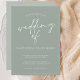 Invitación Mínima De Boda De Guión Verde Sage. Impresiona con elegancia a sus huéspedes bodas con esta invitación a bodas verde musgo, que incluye un hermoso guión blanco sobre un impresionante fondo verde sabio. Esta Invitación tiene un impresionante diseño verde musgo, con vibraciones modernas y mínimas, perfecto para su boda simple, moderno y minimalista. El diseño minimalista y elegante llama la atención sobre el guión blanco, contrastando con el fondo verde claro. Esta invitación hará las delicias de un bonito marco boda rodeado de flores blancas, sabrosas o verdes musgos, y una decoración a juego con los bodas de oliva o eucalipto. Una adición perfecta a cualquier celebración de boda verde claro silenciosa o hermosa. Colectivo Dominical © por Rachel Hannah Gee
