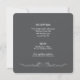 Una simple invitación minimalista a la boda en un fondo de color gris con texto blanco. Pepper agrietada es el color de 2024. Un desplazamiento en blanco completa el aspecto en la parte delantera y trasera. Utilicé el papel de tipo Semi-gloss para un efecto más agradable.