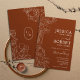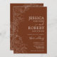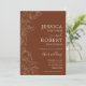 La moderna invitación a la boda boho en terracota quemó naranja. Elegantes tonos tierra de diseño floral con acentos botánicos de contorno dibujados a mano, tipografía de escritura y monograma en la parte posterior de la tarjeta. Invitaciones Zazzle impresas o una plantilla imprimible digital de descarga instantánea.
