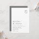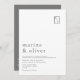 Sencilla, moderna, minimalista invitación a la boda en blanco y negro con sofisticado monograma en la esquina superior derecha y nombres completos en la parte trasera. Moderno, contemporáneo, elegante y único.