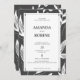 Haga una declaración audaz con esta invitación a la boda moderna en blanco y negro, con sorprendentes motivos de hoja ilustrados y un diseño limpio y estructurado. Perfecto para parejas que desean un diseño contemporáneo y artístico con un toque minimalista. La tipografía centrada aparece en un fondo botánico monocromático, mientras que los iconos elegantes añaden una claridad visual moderna a los detalles bodas. Ideal para los bodas modernos, las parejas de avanzada en arte o los eventos con corbata negra con ventaja.