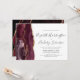 El borde izquierdo de esta elegante y moderna invitación a la boda incluye una acuarela de color burdeos bordeada por un falso purpurina de oro. El texto del personalizable combina escritura a mano, copperplate y cursiva en gris carbón sobre fondo blanco. En el reverso se puede apreciar un diseño burdeos y agate dorado a juego.