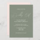 Elegante y sobria invitación a las bodas en moda de colores verde sabio y rosa rubor. Personalice estas hermosas invitaciones de boda con su texto personalizado.