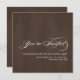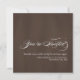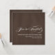 Invitaciones a la boda elegante y moderna en color marrón oscuro con texto de escritura blanca junto con una fuente moderna en blanco para la información de invitación a la boda. Las invitaciones tienen una foto de textura marrón en papel impreso en ambos lados para un efecto 3D. Diseño de Elke Clarke © 2010. Personalizar con sus iniciales, nombres y texto de información boda. Para mayor sofisticación, también escoja entre una variedad de artículos especiales. Se muestra en papel blanco simple.