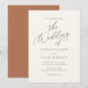 Invite a amigos y familiares a compartir en su celebración boda con esta simple invitación a la boda, con colores cálidos y un hermoso guión en el frente, y un fondo naranja quemado.