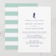 Las invitaciones a bodas de verano con caballito de mar presentan un estilo náutico clásico con un aspecto limpio y minimalista y un toque alegre. El diseño presenta un pequeño ilustracion de caballitos de mar azul marino en la parte superior con los detalles de su boda en elegantes bloques azul marino y letras de guiones. Invitaciones revertidas a amplias rayas horizontales en contraste con el verde y el blanco de los fondos marinos de menta pálida. Perfecto para el club náutico, el barco, la playa o los bodas de verano. ¿Necesita ayuda con la redacción de la invitación a la boda o la personalización? Póngase en contacto conmigo a través del enlace "Contáctese con este diseñador" en esta página.