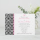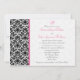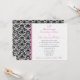 Este clásico damasco blanco y negro monogramado, con invitación a la boda en el techo rosa, se muestra aquí en papel básico para ese lujo extra. El tipo de papel y todo el texto es personalizable. Si necesita algún elemento coincidente en este diseño, o si desea cambiar el color rosa a otro color, envíe su solicitud a niteowlstudio@gmail.com.