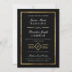Invitaciones de boda sobre un falso efecto de Relieve metalizado de oro y blanco sobre un fondo negro puro. Guión clásico y tipos de letra serif. Un simple efecto art deco alrededor de la fecha boda. Tenga en cuenta que el Relieve metalizado de oro es un efecto impreso - no se utilizará ningún Relieve metalizado metálico real en la invitación.