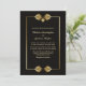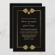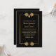 Elegante, sencilla y moderna invitación a la boda negra enmarcada en oro.