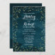 Invitación a la boda nocturna estrellada. Estrellas en el cielo nocturno enmarcan esta elegante invitación boda temática boda. Estrellas de oro falso sobre un fondo de color azul verde azulado profundo permite destacar el texto boda blanco.