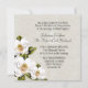 La encantadora invitación a la boda cuadrada hecha con ropa de cama de marfil con aspecto de fondo. Hermosos cuadros de magnolias blancas decoran el fondo izquierdo. El texto en negro es totalmente personalizable y listo para personalizar para su día especial. Invitación a una boda de Bonito para una novia del sur.