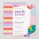Una invitación colorida y contemporánea a la boda en una paleta de colores frescos.