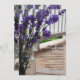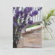 Esta invitación a una boda campestre incluye una foto de lavanda en un frasco de albañil en un porche blanco —un porche donde los perros duermen, los niños juegan y los padres se sientan juntos por la noche viendo la puesta de sol. Se muestra en papel básico, que es el más asequible, pero puede actualizar a fieltro, lino o reciclado.