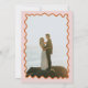Esta audaz invitación a una boda rosa coral adopta un tema retro, con un vibrante borde naranja y una simple tipografía. Su diseño único y luminoso incluye espacio para añadir una foto en la parte de atrás y personalizar los detalles de la pareja, lo que lo hace perfecto para las parejas que quieran celebrar un boda de inspiración retro, boho, otoño o verano. Explore los elementos coincidentes en nuestra suite boda para completar el aspecto.
