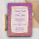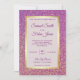 Invite a sus huéspedes con esta elegante invitación a la boda, que incluye un falso borde de oro y un bonito fondo falso de purpurina morado. Simplemente agregue los detalles de su evento en esta plantilla fácil de usar para convertirla en una invitación única. Girar la tarjeta para añadir el monograma de la novia y el novio en la parte posterior de la tarjeta.
