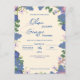 Invitación a la boda romántica con flores azules y