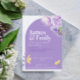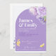 Fija el tono con un alegre florecimiento! Esta Invitación a las Peonias Púrpura presenta florales vibrantes en violeta y amarillos suaves y soleados, emparejados con un tipo de letra retro que añade el toque correcto de personalidad. Es una introducción fresca y floral a tu gran día —elegante, un poco descarada, y totalmente tú.