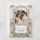 Evocar un romance eterno con esta exquisita plantilla de invitación a bodas inspirada en el Art Nouveau, adornada con delicadas peonías rosas, un verde elegante y un intrincado oligoño dorado. El marco vintage presenta una suave textura de acuarela en tonos suaves azul-verde, que complementa con gusto los exuberantes adornos florales. La parte delantera de la invitación muestra un marco floral ornamentado, mientras que la parte trasera ofrece espacio para la foto de una pareja muy apreciada, creando un toque personal que los huéspedes apreciarán. Me encanta el diseño pero necesito un color floral diferente para que coincida con tu tema boda—Siéntete libre de enviarme un mensaje y veré lo que puedo hacer por ti.