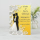 Ilustracion romántico con una silueta de novia y novio de fondo floral.