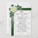 Invitación a la boda con una rosa blanca única con cinta de satín verde oscuro y perlas en fondo de encaje impreso. con corazones de oro ligados. Composición de imagen y ilustracion para elegante plantilla formal de boda, aniversario o partido de compromiso El texto es completamente personalizable. Añade tu información o cámbiala por completo. Seleccione un tipo de letra y un color de fuente diferentes. La plantilla se puede utilizar para cualquier ocasión especial. Simplemente cambie el texto para que se ajuste a sus necesidades.Si debe elegir una invitación de tamaño diferente, asegúrese de que hace clic en el cuadro para asegurarse de que la imagen tiene formato para rellenar la plantilla. no hay ninguna impresión separada en este diseño impreso y, por lo tanto, no hay necesidad de envío adicional.