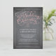 El encanto sofisticado. Esta invitación a Chalkboard Script marca el tono de un boda nostálgico a la vez moderno. La tipografía de tiza de época en Peony Pink crea el POP perfecto contra un fondo de tiza de moda. También está disponible la tarjeta de coincidencia Save-the-Date y Response. Añade un sello de boda de Envelopments de nuestra extensa colección de correos para que coincida perfectamente con tu invitación. Los sobres, los recubrimientos y los recintos Pocketfold® están disponibles como complementos (a la derecha) a través de zazzle.com
