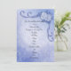 Rosas azules ilustrados sobre una plantilla de invitación a bodas con fondo floral azul suave y romántico con cintas ilustradas