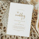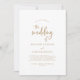 Esta rústica invitación a bodas con escritura dorada es perfecta para una boda campestre. El diseño, sencillo y moderno, en oro y blanco, presenta una original y original caligrafía escrita a mano con un estilo contemporáneo minimalista de boho. Personalizable de cualquier color. Mantenga el diseño mínimo y simplista, tal como está, o lo personaliza añadiendo sus propios gráficos y obras de arte.