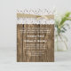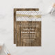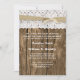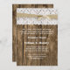 Invitación a la boda rústica de moda, con gráficos de fondo rústico de madera templada. Gráficos de elegante encaje blanco, en la parte superior, tiene una cinta doble de doble filo de color champagne atada en un nudo. Personalice el texto en blanco para su día especial. Productos a juego disponibles.