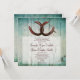 Esta rústica invitación de boda occidental tiene dos herraduras entrelazadas en la parte superior de la invitación. El fondo es una estampada de madera de granero angustiada que tiene un tono azul. La parte trasera de la invitación tiene el mismo estilo rústico de diseño con la palabra "Amor" en escritura. Podría cambiar esta redacción para personalizarla con los nombres de la novia y del novio si lo desea. Estas invitaciones a bodas temáticas son perfectas para bodas de cowboy.